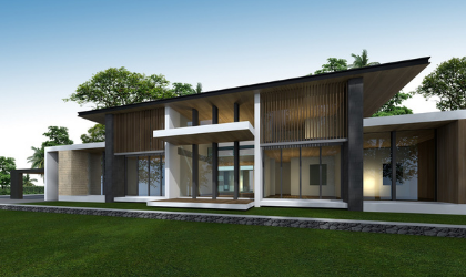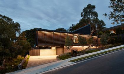 The sloping terrain and unconventional topography of the home creates a perfect balance for indoor and outdoor living. The home perfectly aligns the native tree line scape and references modernist design principles.