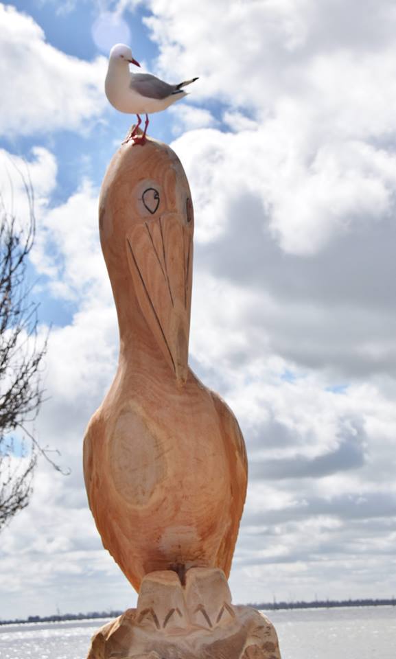 The pelican inspired sculpture pays homage to the surrounding area most notably Lake Mulwala, and preserves the remainder of the Redwood tree.