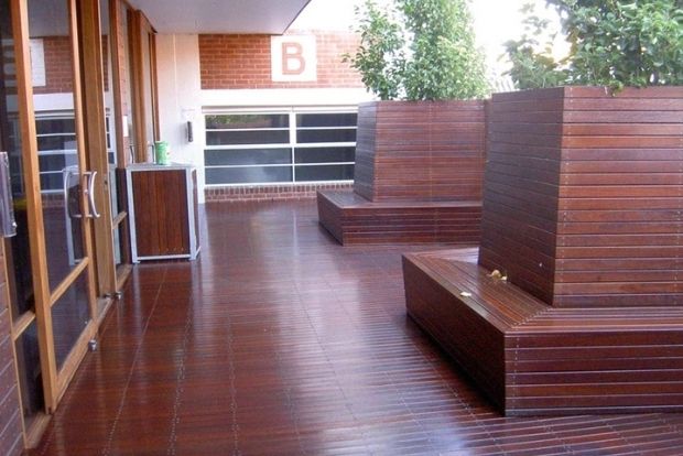 The public balcony was prepped using Quantum Timber Finishes SAP STRIP to remove all tannins and extractives from the timber. Applying SAP STRIP meant the weathering process rules did not apply, and the final timber coating could be applied immediately. Three coats of TIMBRE PLUS DECKING were applied for its hard wearing, outstanding adhesion and toughness as well as slip and UV resistance.